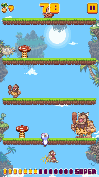 1、到达顶部并收集菠萝以获得12个角色并享受冒险;