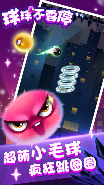 极简玩法 极易上手——手指敲击屏幕即可控制小毛球上下跳动,穿过一个个圈圈。