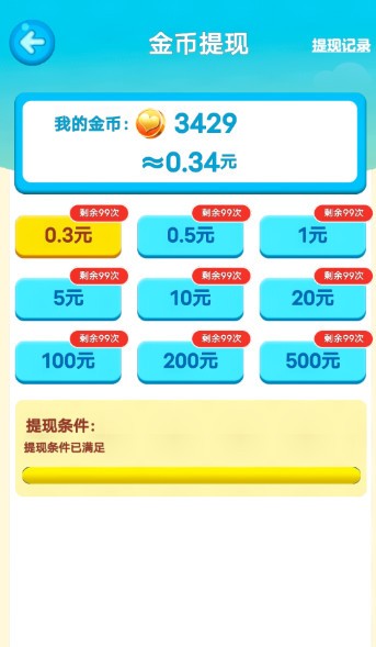 3.完成相应的提现任务就可以获得提现机会,每天每种金额都可以多次提现。