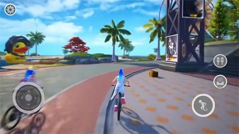 1、玩家控制角色驾驶自行车。你可以尝试各种赛道,只要控制你的自行车前进。