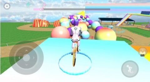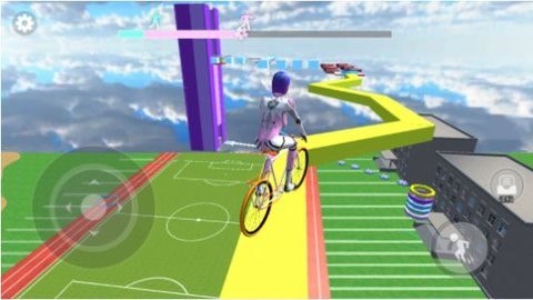 1、玩家控制角色驾驶自行车。你可以尝试各种赛道,只要控制你的自行车前进。