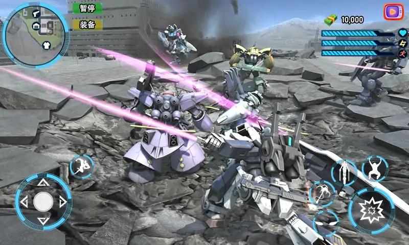 1、使用虚拟按键来控制机甲移动和攻击,利用技能打出伤害。
