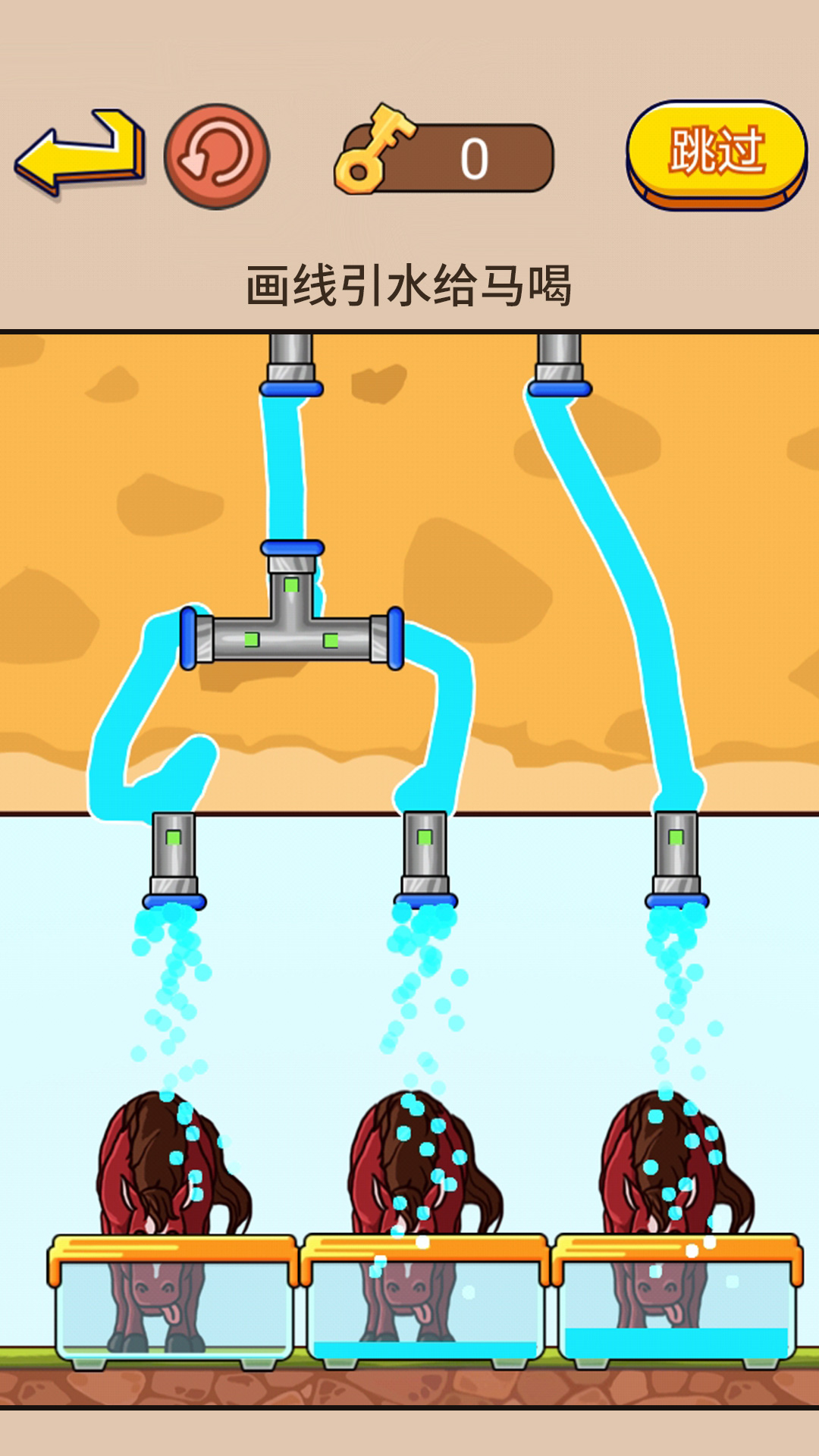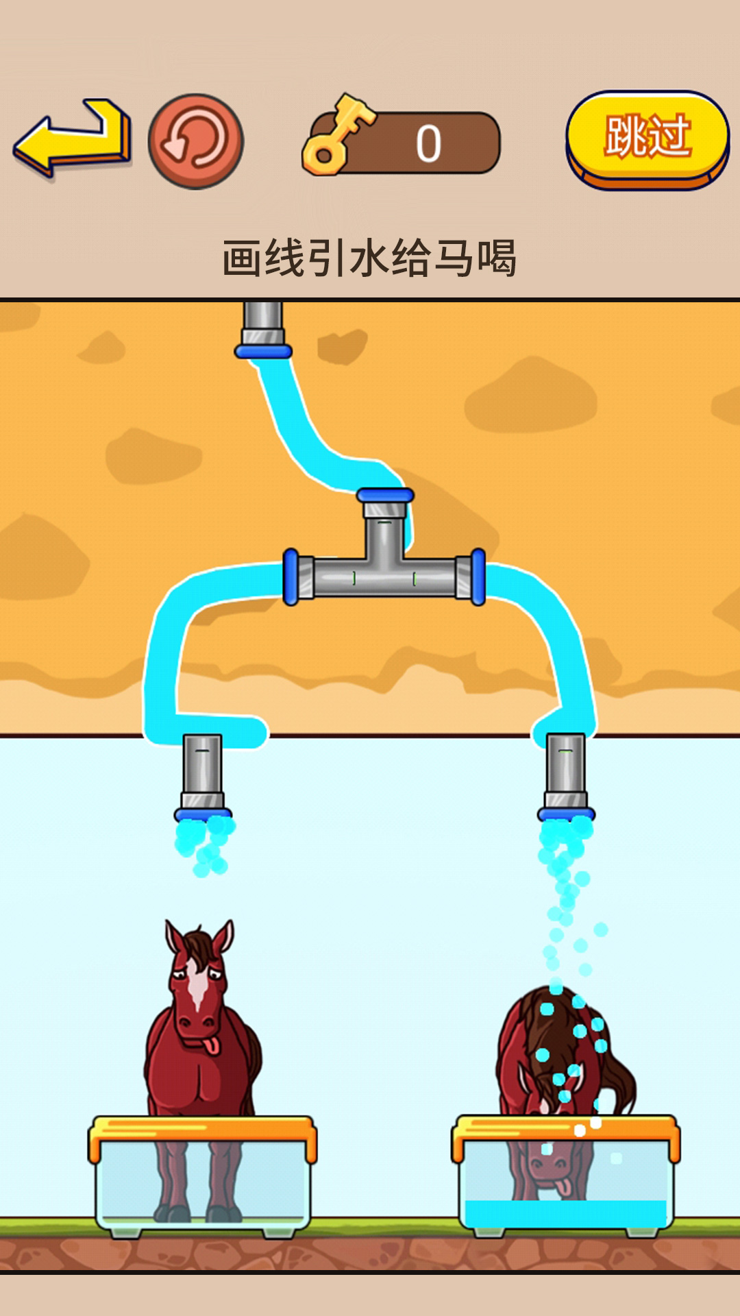 这样才能让马儿们喝到水;游戏中链接管道的方法多种多样,展开你的想象力尽情的去尝试吧!
