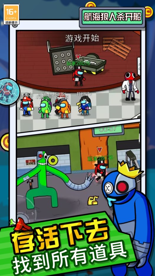 3、丰富有趣的联机挑战,扮演不同身份的角色,在小船之中展开无比精彩的对决。