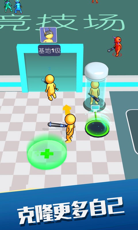 拿着武器去击杀敌人,不断升级你的等级和武器,按照游戏提示去克隆出更多的同类,