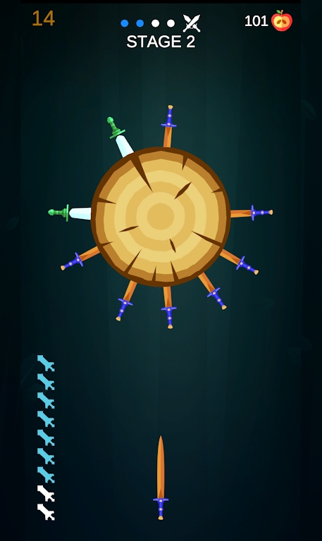 1.进入游戏之后你要灵活的操控投掷飞刀,精准的投掷命中目标;