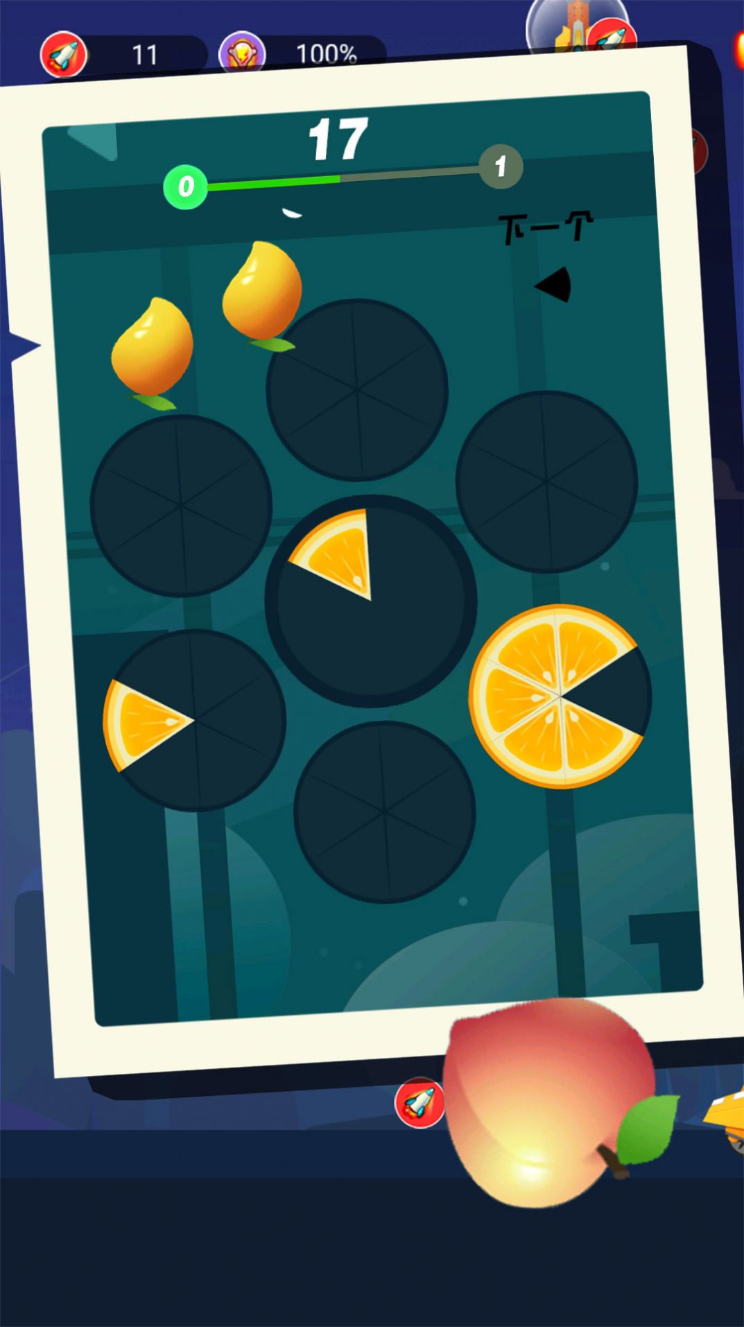 1、全新的切割挑战正式展开,你可以进入各种场景中自由切割水果,获得更高的分数。