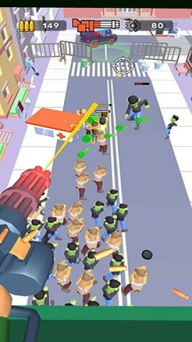 1、内容:在游戏中,玩家可以在各种战斗场景中进行游戏,通过射击追逐市民的僵尸来完成关卡。