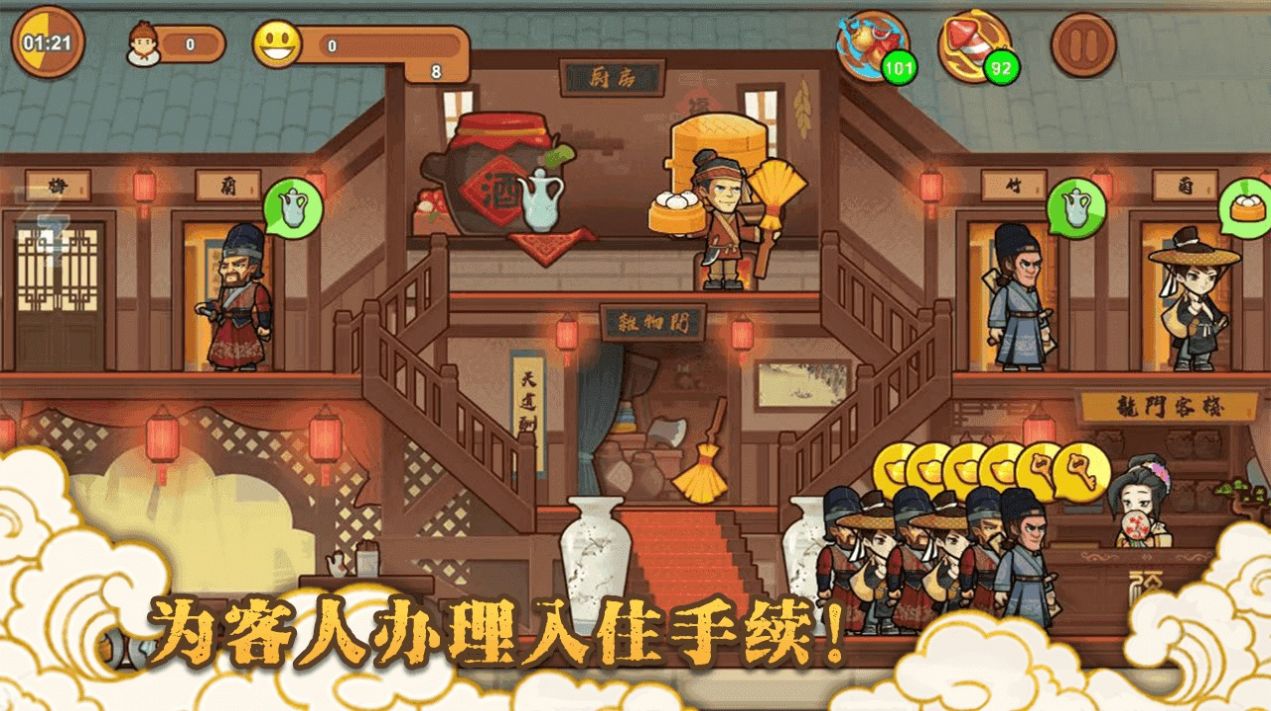 1、在古代江湖之中,经营一家龙门客栈,招募更多的店小二。