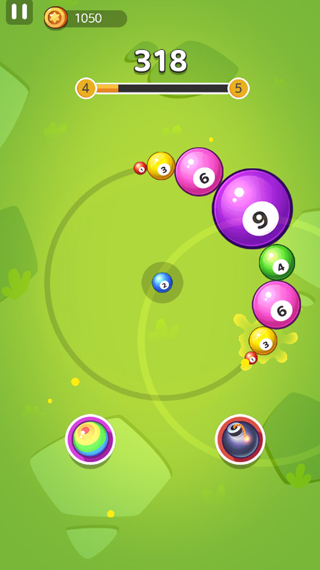 有趣的休闲合成类游戏,玩家瞄准球球发射,通过撞击消除球球,
