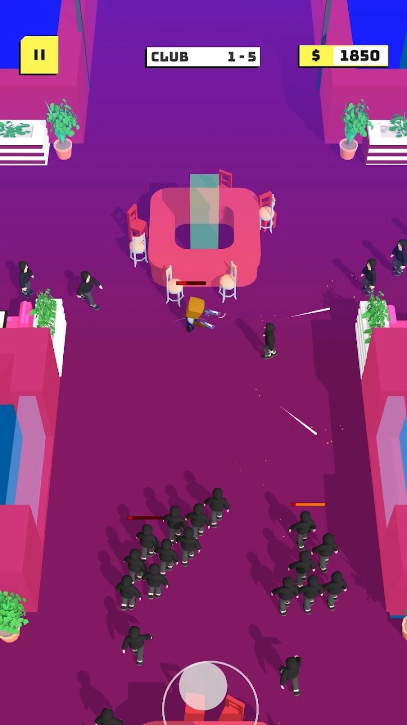 2、黑帮的保安会尝试围堵玩家,需要玩家灵活走位。