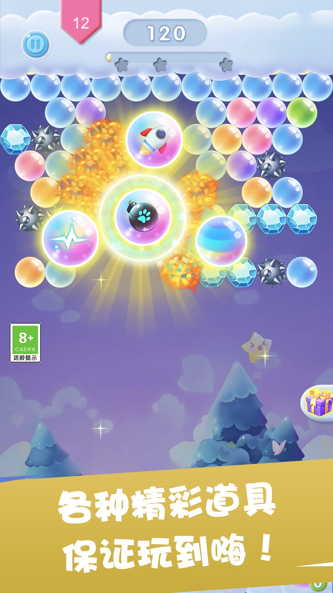 无尽模式有无穷的神秘礼物等你来挖掘,关卡模式的众多关卡在你在泡泡的世界遨游。