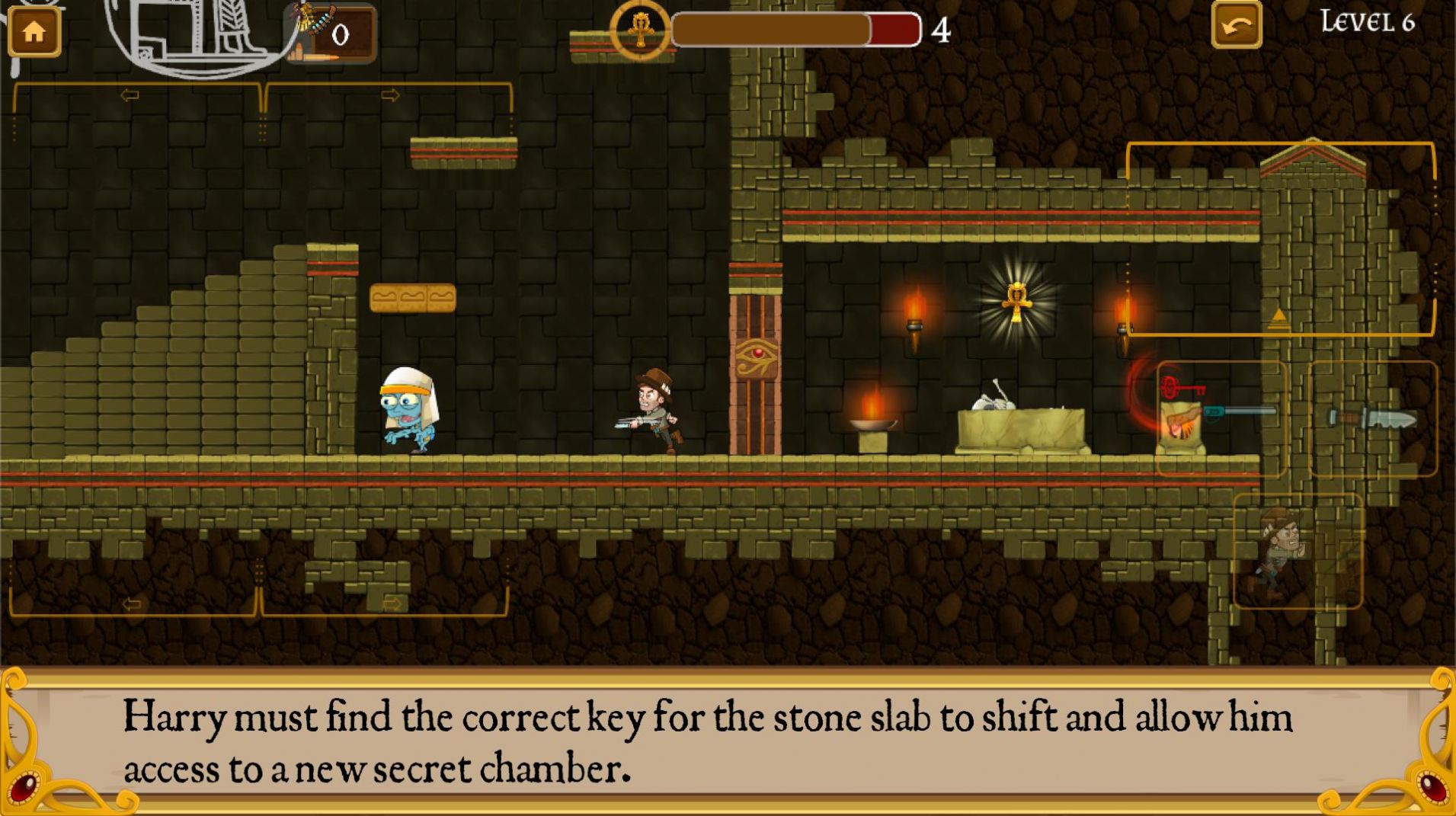 是一款横版益智闯关类游戏,冒险者发现了一座金字塔,现在他进入里面,寻找隐藏了多年的秘密,但是危险也随之而来,他没有退路了,必须寻找要是,击败木乃伊寻找出路。