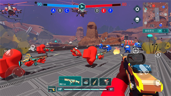 1、灵活使用手指控制角色,拿起重型武器进行射击决斗;