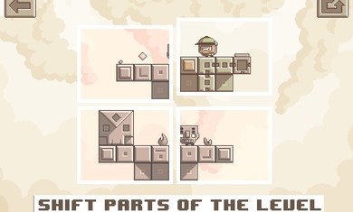 1、并帮助小探险家到达出口,微小的单屏拼图平台游戏;