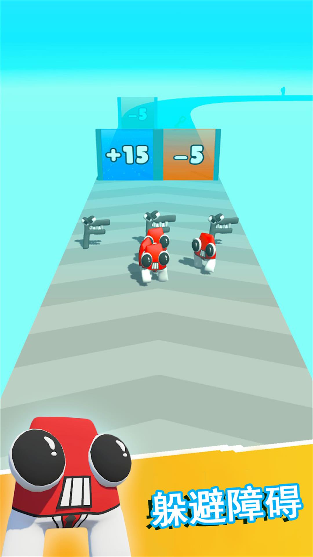 玩家在游戏中操控卡通化的英文字母,在跑酷玩法中,躲避陷阱,收集同类,积聚实力。