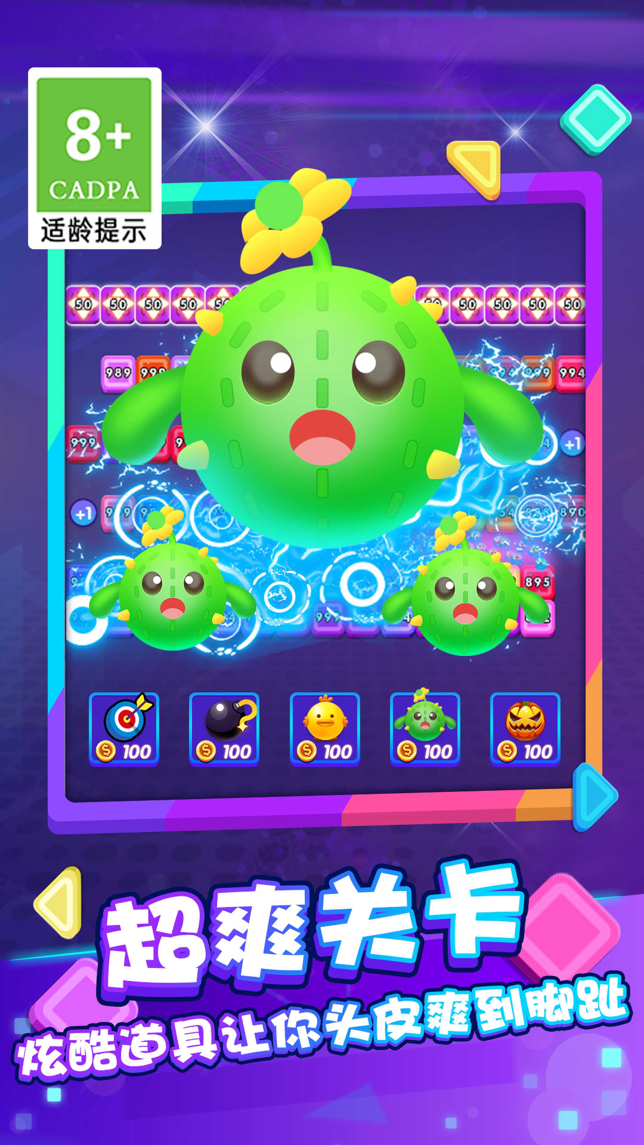 1、通过发射球球来消除方块的趣味闯关类游戏,经典有趣的方块消除游戏;