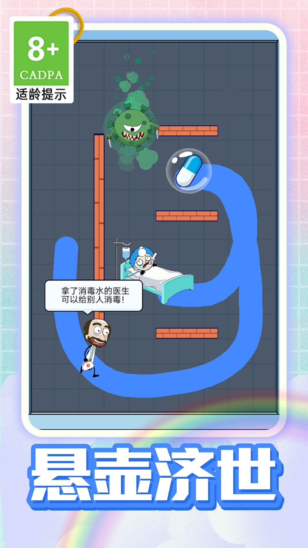 2、超简单的画线操作,只需要画正确的线就可以救病人,老少皆宜。