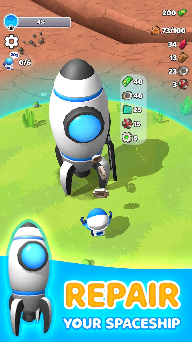 2、使用星球上获取的原材料来制作道具,完成对小火箭的修复。