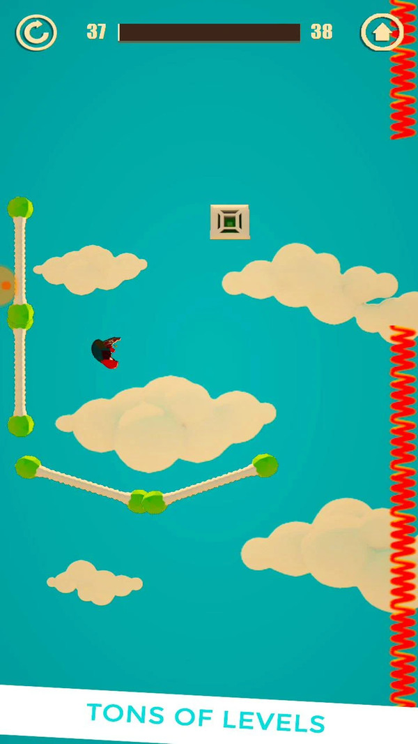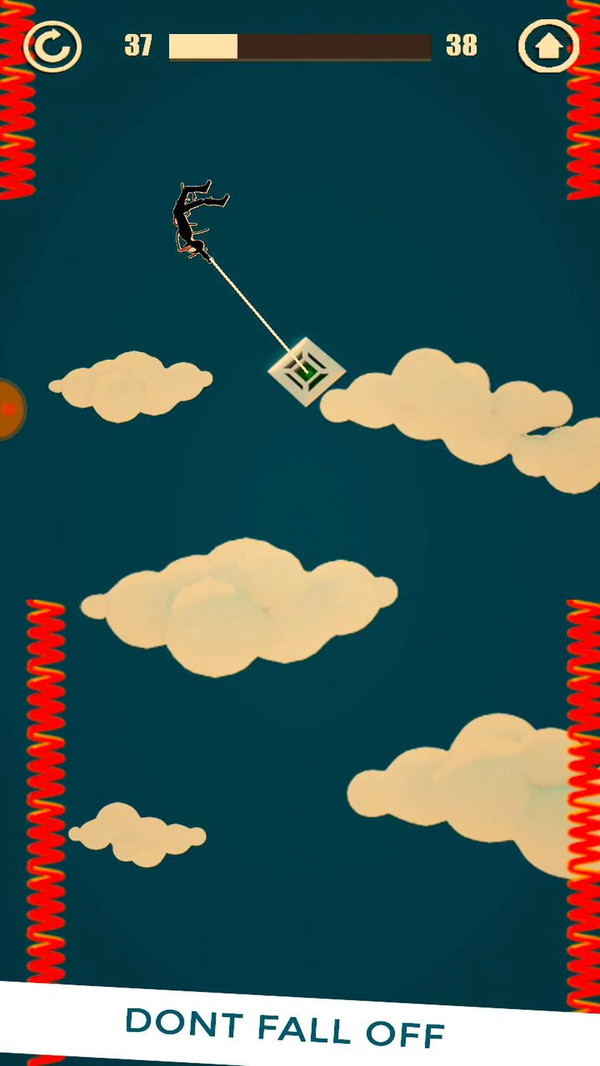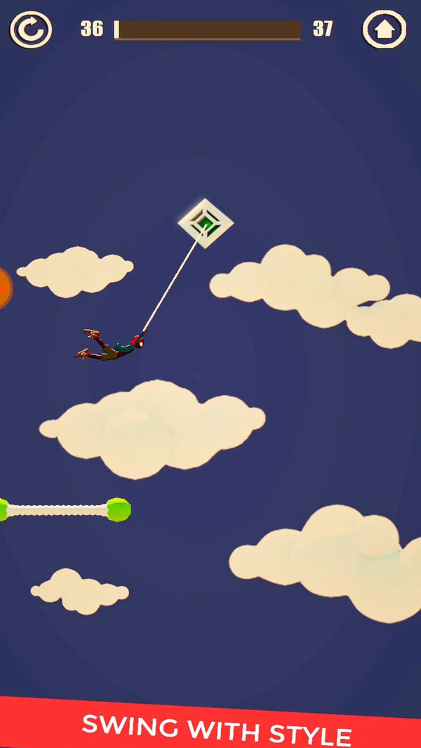 1、延续传统的火柴人冒险玩法,利用秋千跳跃各种障碍物,成功的到达目的地;