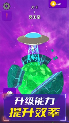 1.进入关卡进行挖矿挑战,完成任务后可以领取丰厚的金币奖励,并不断解锁更多的星球进行挑战。