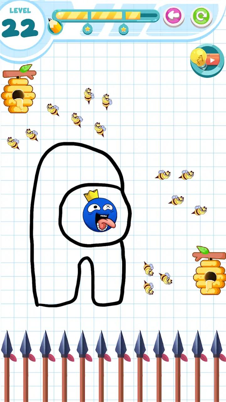 2、有数百种方法可以解决每个难题,只需在屏幕上绘制线条来拯救我们的彩虹朋友;