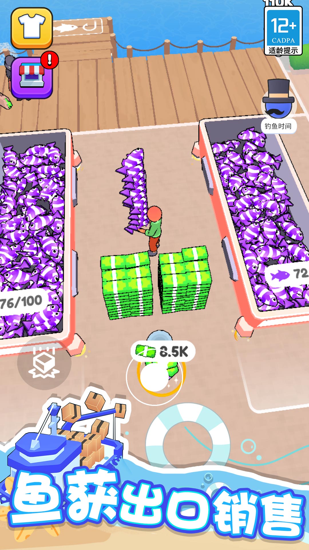 1、模拟港口经营,出售海鲜,积累财富,建设港口商业圈!