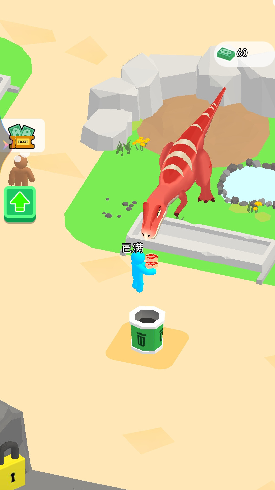 2、通过喂饱你的恐龙,打扫恐龙园,卖门票尽可能多地赚金币。