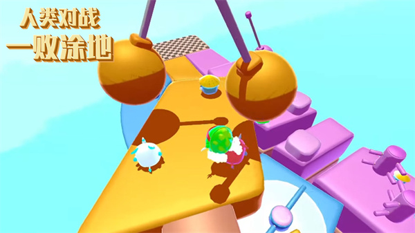 支持多人联机的小游戏。在这里你将体验精彩的大乱斗,解锁更多的爆笑关卡,大摆锤,冰块等等,操控角色闯关,注意小心你的对手,冲向终点吧。