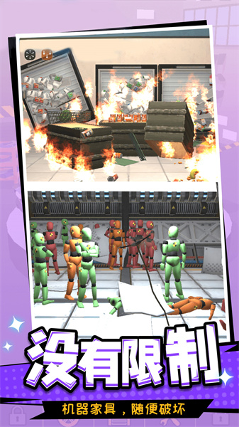 2.享受破坏带来的快感和刺激,解锁更多的武器装备展开你的破坏之旅,无限爽快。