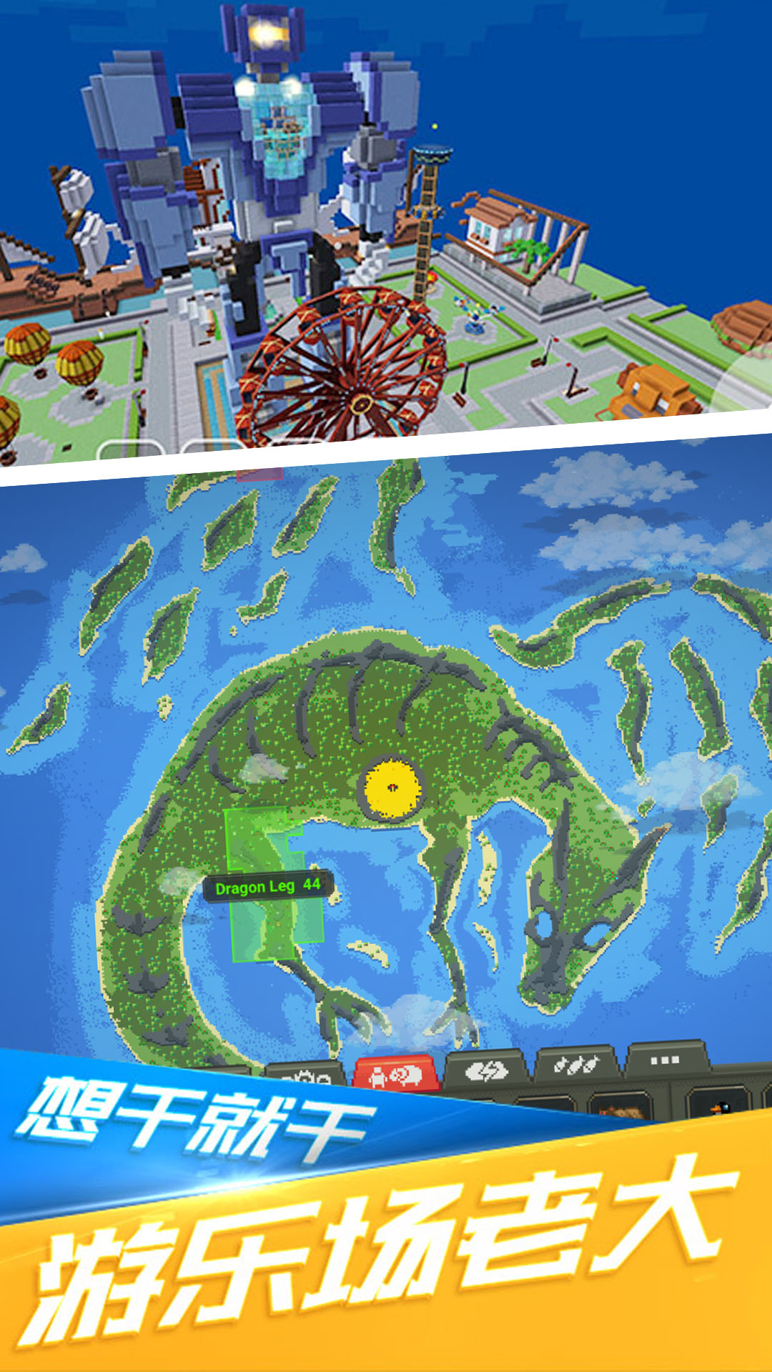 沙盒游乐园游戏是一款玩法极其自由的手机模拟建造类的游戏,玩家们在这里游戏的时候是需要玩家们拥有着非常高的创意哦,让你能够自由的去创建各种不同文明出来,当然在进行创建的时候是需要拥有非常多材料,不断的去寻找更多的材料帮助你很好的去建造一番吧,还有着非常多的新奇玩法元素融入了进来,非常值得前来进行体验哦!