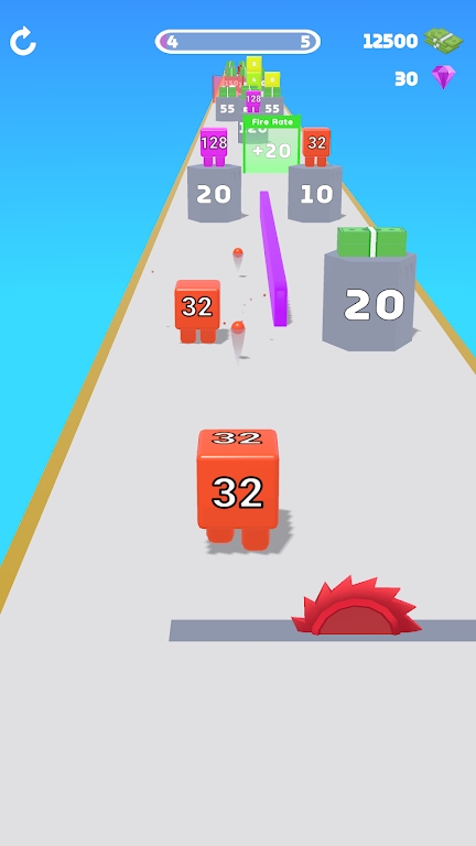 1.在赛道上你一定要灵活的发挥,这些移动的方块会就是你本次射击的目标;