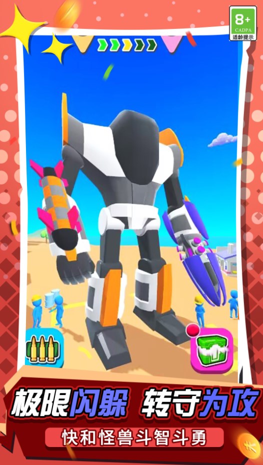3、拥有各种刺激有趣的挑战,能够释放不同机器人的潜能,去更好的战胜更多的怪兽。