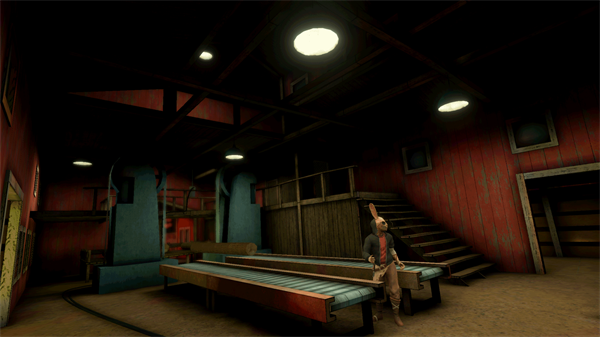 当你准备走出房间时,发现一只手打木棍的大兔子在四处转悠,直接告诉你它不是一个好惹的家伙,但是你想出去,首先就要找到逃出去的方法,所以你要避开这只兔子,在这里进行搜索,与这只兔子来一场捉迷藏的游戏!
