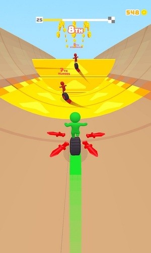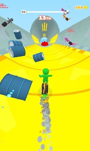 通过点击屏幕来控制小人在赛道不断的向前滑行,非常简单的操作方式