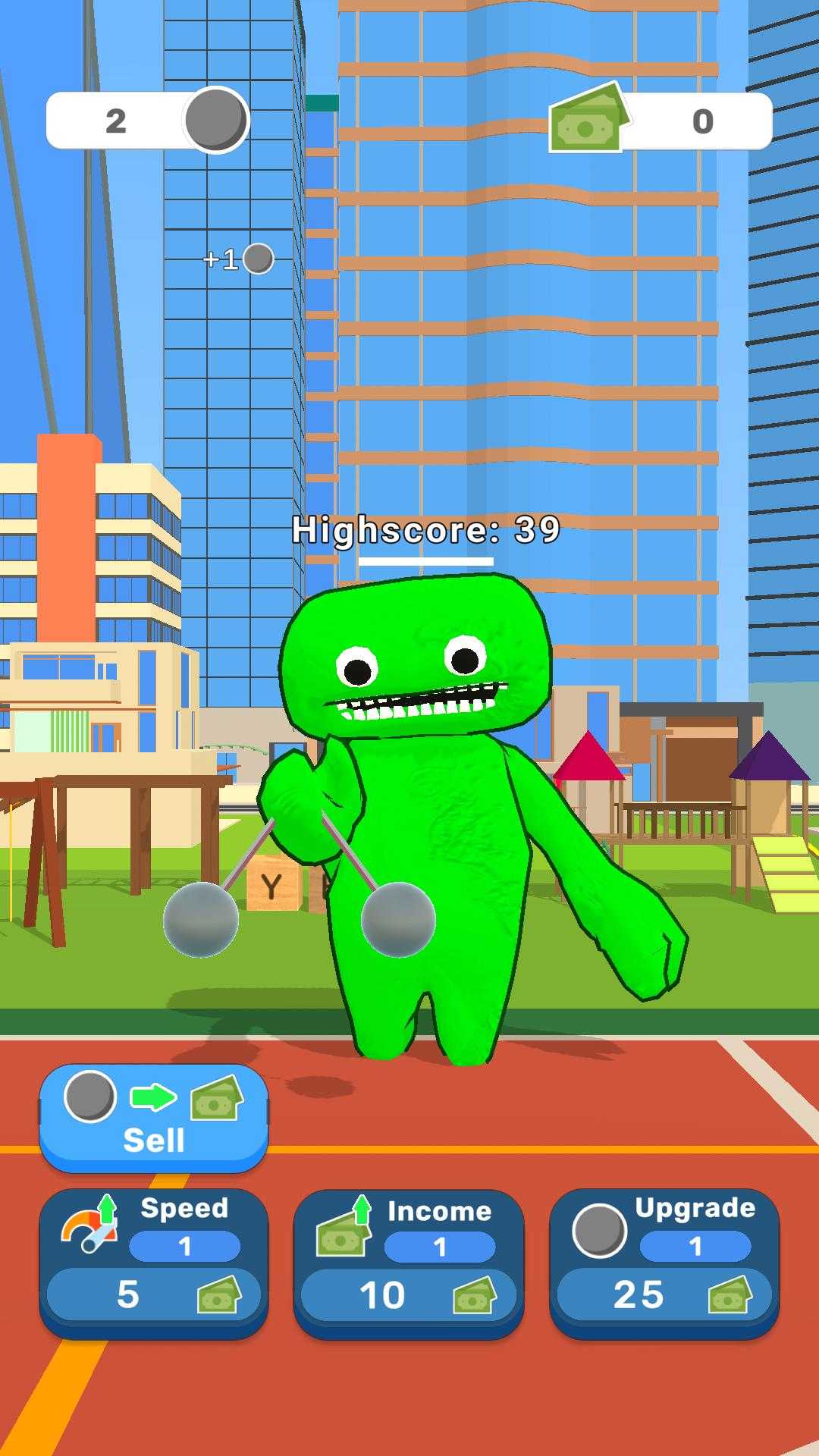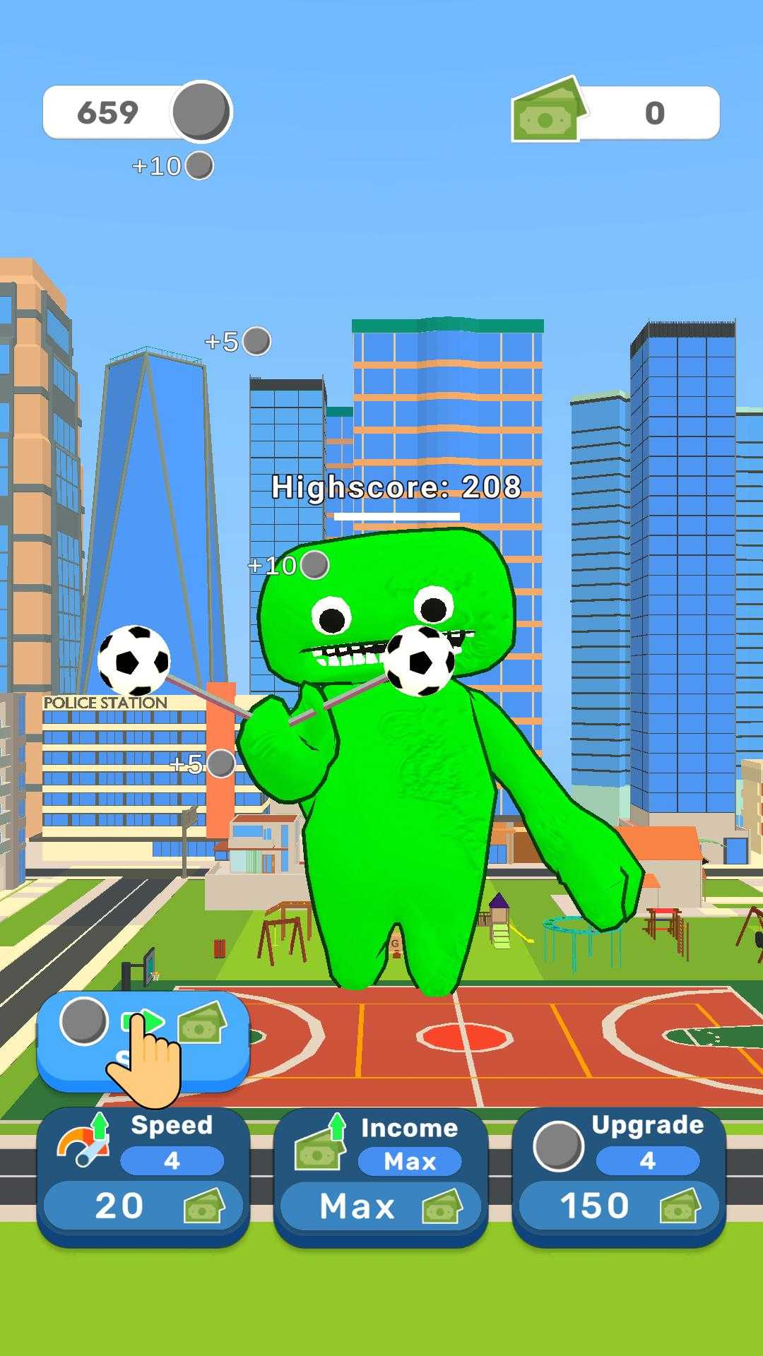 1、玩家无需进行任何操作,就能看到绿色怪物通过玩球获取金币。