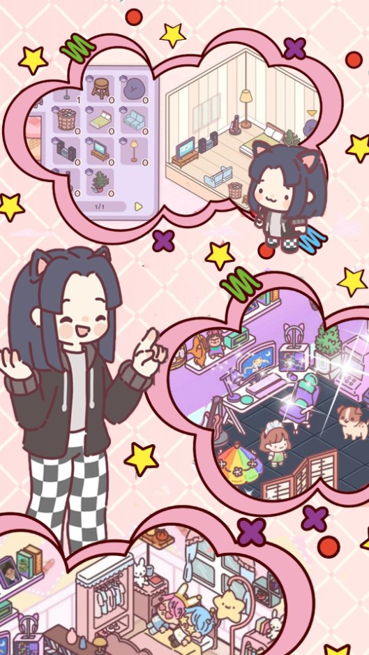 1、让你体验愉悦可爱的角色形象,快来打造属于你的梦幻之家吧。