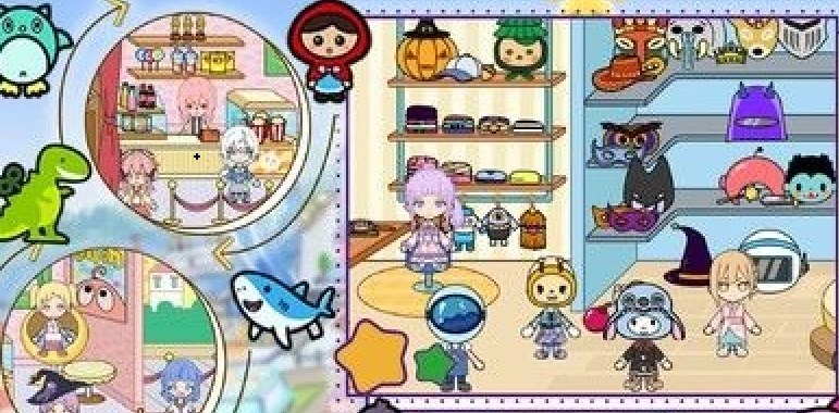 3、孩子们可在托卡小镇购物商店玩乐,去服装店买新款服装,化妆打扮一番。