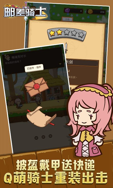 邮差骑士是一款非常刺激的动作冒险类游戏,整体的游戏节奏十分的轻松愉快,玩家首先就是需要去选择自己的角色人物来进行战斗,在自己送邮件的路上不断的去和各种敌人进行战斗,从而来获得大量的装备和材料,材料用来升级和培养自己的人物属性都是不错的选择,还可以去进行售卖来获得大量的金币去购买大量的药品,来保证自己的血量,让自己可以更加安全的将邮件送到客户手中,玩起来十分的刺激。