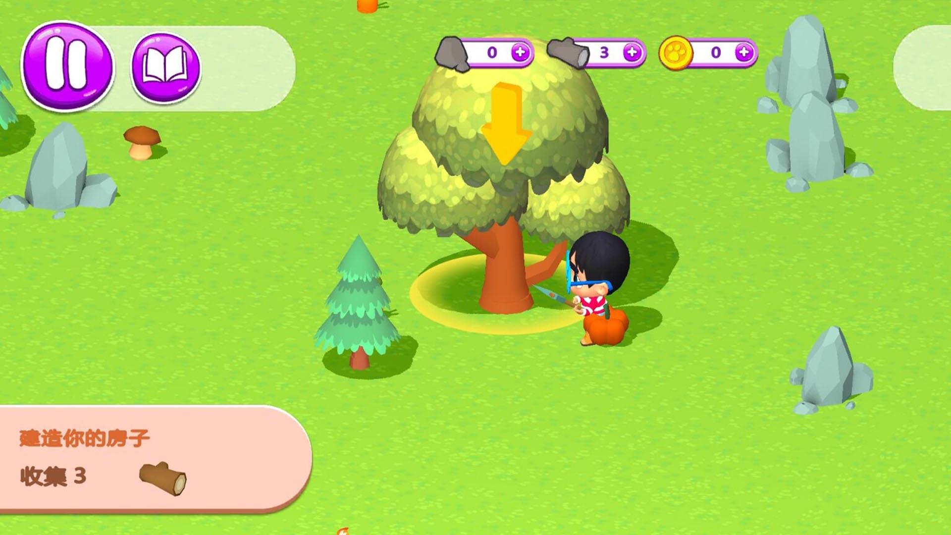 2、采集各种资源并建设房屋,建造属于主角与小动物们的家园。