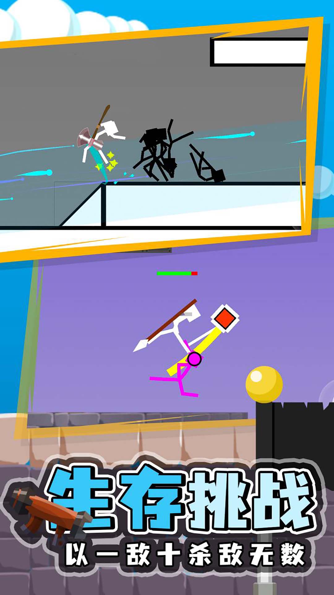 2、玩家控制火柴人来进行最残酷的物理格斗,不管玩家用什么样的方法,目的都是淘汰对手。