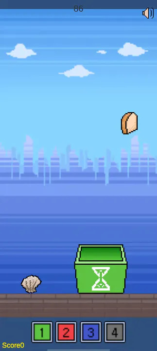 1、美术表现是像素风,画面元素比较少,主题是很明确的。当那些没有接到的垃圾落到地面上,就会形成山一样的垃圾堆,还是挺形象的。