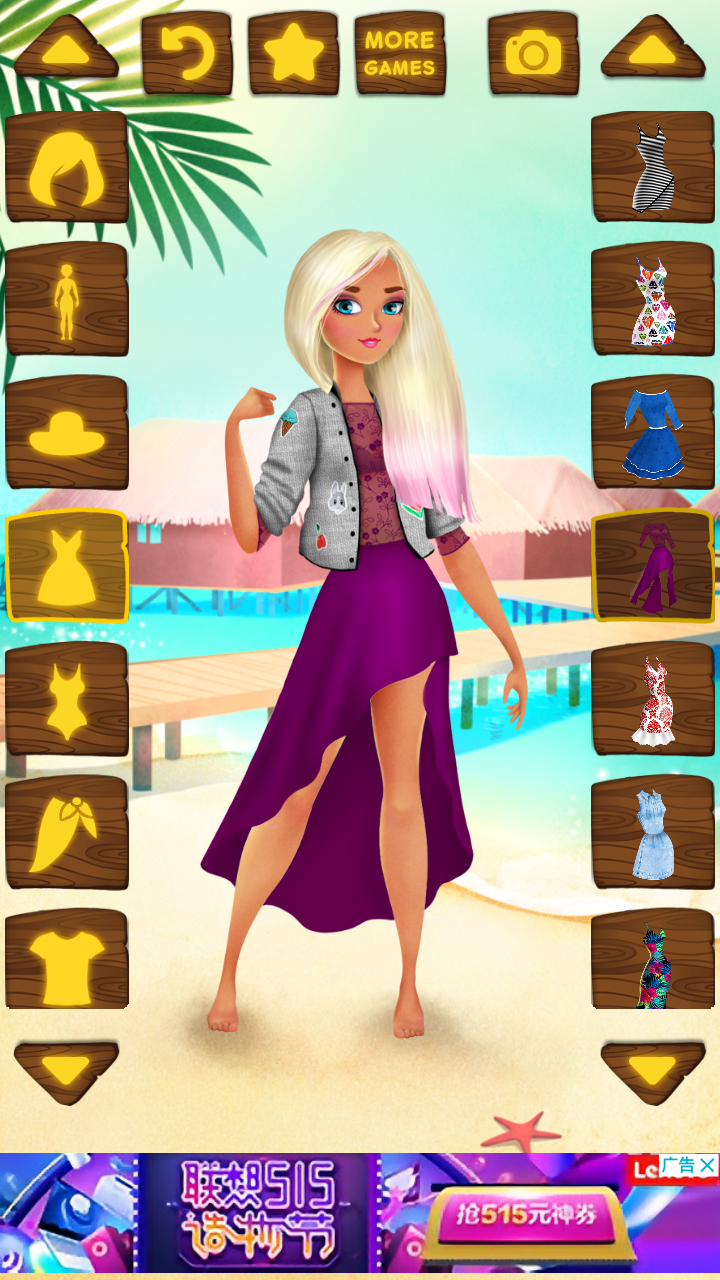2,一个消磨时间的好游戏,以夏日为主题,按照沙滩夏日主题为游戏中的女孩穿衣打扮,和她们一起度过夏日,感受夏日风情。