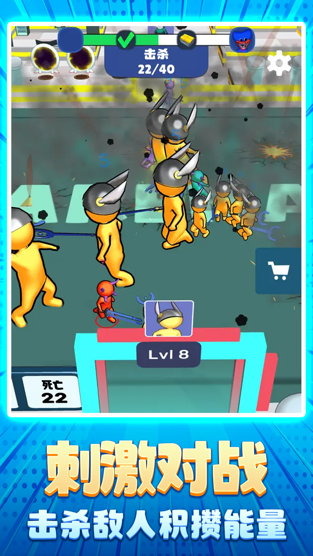 1、你将在战场中迎战大量的敌人,拾取各种道具强化实力,快速完成新的使命吧。