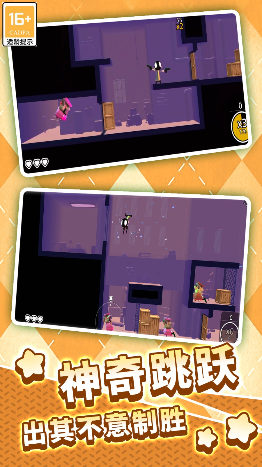 1.这是一款非常有意思的动作游戏,玩家将控制小人在关卡之中解决掉所有的对手,顺利到达终点。