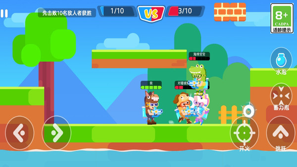 1.一款卡通风格的射击闯关小游戏,玩法简单且有趣,还可以和好友一起组队。