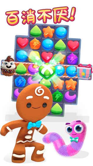 3、氛围浪漫,游戏的氛围感十分的充足,完全能够让玩家实时的体验到消除曲奇是的感受。