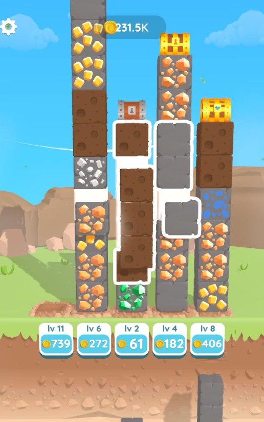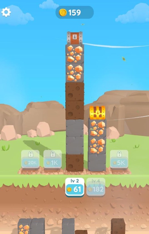 3、玩法规则还是非常简单易懂的,还有各种难度的挑战,一步步挑战高难度收集更加稀有的矿藏。