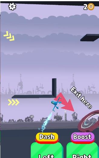 点击右侧技能,需要与物品或墙壁进行碰撞,而后爆炸产生反冲力,也可以让角色飞的更远。