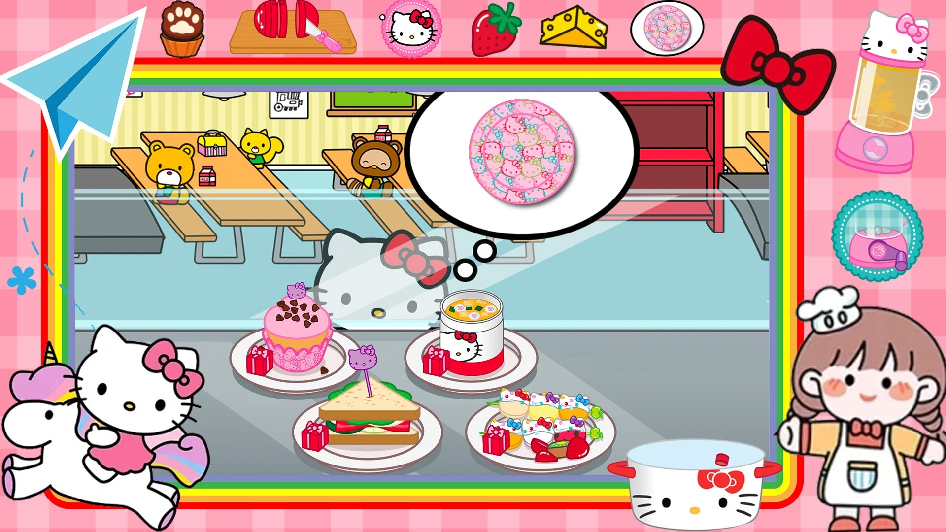 加入梦幻美食小厨房,在学校餐厅选择要准备的丰盛午餐。如果你搭配食谱的方式正是HelloKitty想要的,